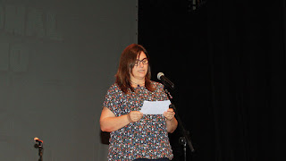 Després, una quarantena d’assistents han anat pujant a l’escenari per participar en la recitació col·lectiva d’una selecció de textos poètics ben encertada i preparada prèviament per la promotora de la celebració, la qual ha iniciat la lectura amb un fragment traduït de l’Alcorà per Dolors Bramon. Cada participant llegia el nom de l’autor o autora del text que havia escollit, així com el del traductor o traductora a la nostra llengua, abans de recitar el poema.