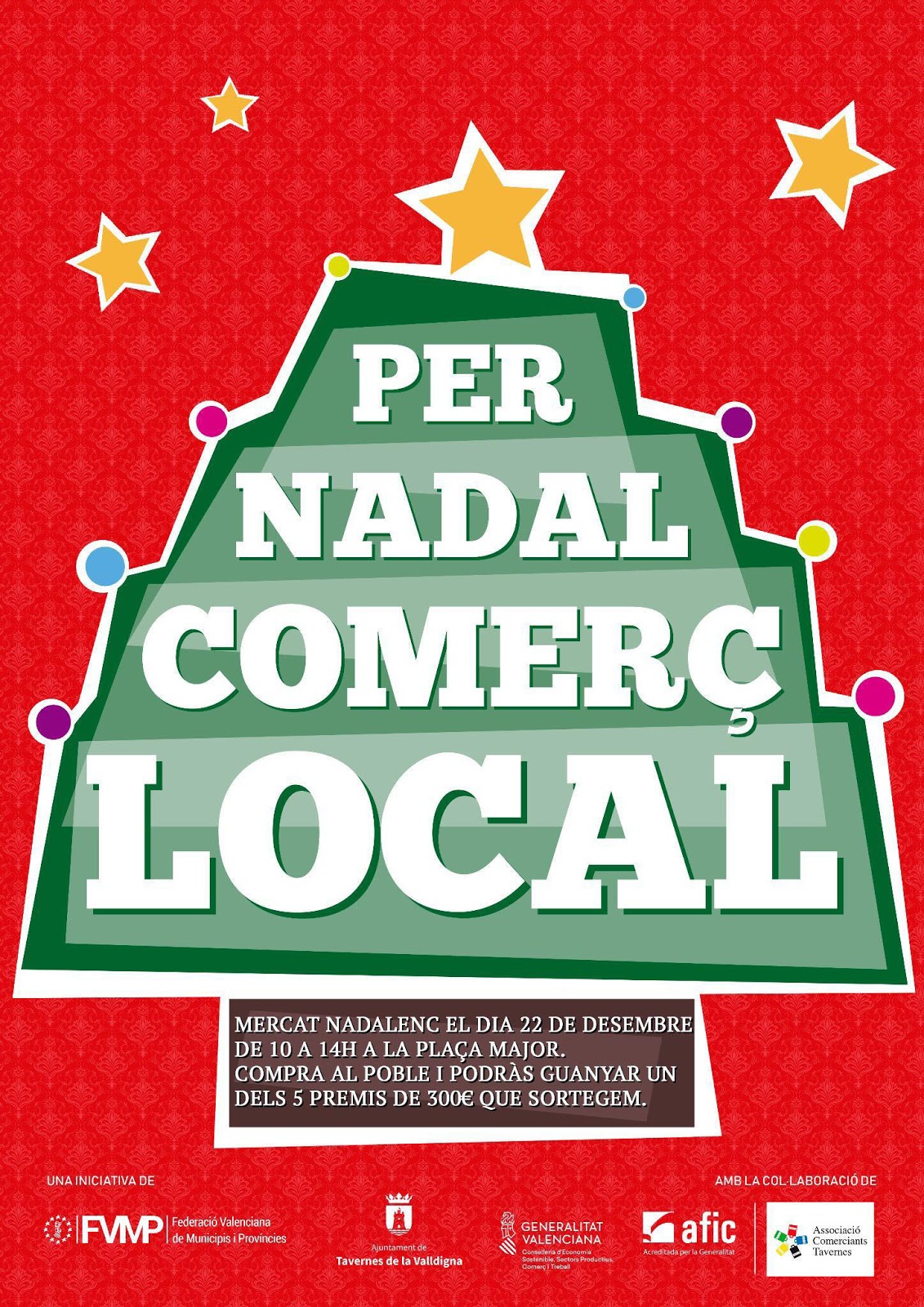 L'Associació de Comerciants de Tavernes, amb la col·laboració de l'Ajuntament de la ciutat, organitza per a demà diumenge, dia 22, el Mercat de Nadal en la plaça Major entre les 10 i les 2 de la vesprada. En total seran 14 parades de l'associació les que està previst muntar, que tindran com a col·laboradores les entitats locals Creu Roja, Grup Scout, Associació Animalista i el grup de l'Espai d'Art que dirigeix Xaro Bonilla. L'organització ha previst també jocs infantils i castells unflables per als menuts.