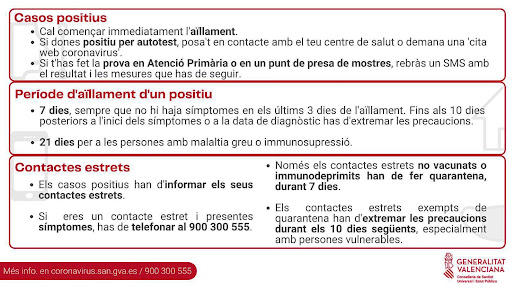 La imatge de dalt recull el protocol covid-19 i com s'ha d'actuar en cas d'infecció i confinament, segons l'esquema publicat per la Generalitat. Atenció al nou telèfon per a coronavirus en contactes estrets i si tens simptomes: