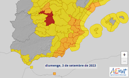 AEMET ha activat l'avís taronja per precipitacions molt fortes almenys fins a les 15 hores, ja que a la vesprada s'espera que les pluges intenses es desplacen cap a Castella-la Manxa i Madrid.